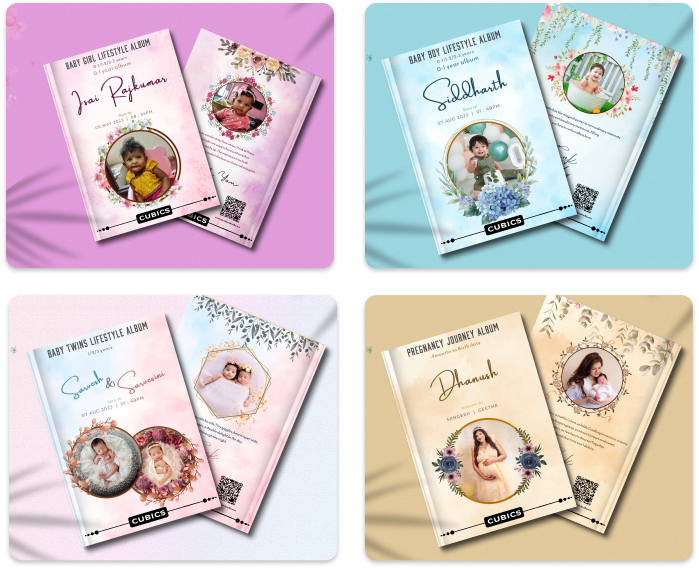 A visual symphony of joy and innocence, our "Whimsical Beginnings' album is a cherished collection, blending pastel hues and heartfelt snapshots to celebrate the magical moments of your baby's early life.